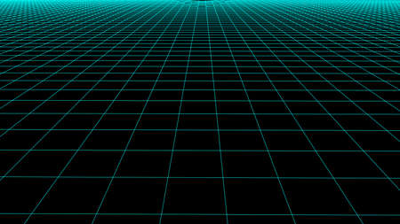 Abstract blue perspective grid. Digital background in retro style. Cyber landscape on dark background. 3d rendering