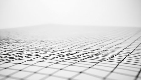 This abstract image features a detailed grid pattern on graph paper, showcasing symmetry and depth with intricate lines, perfect for creative design projects.