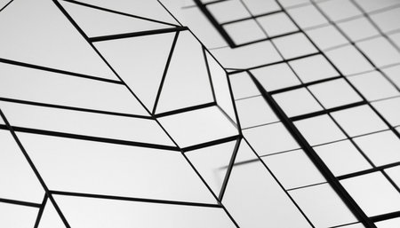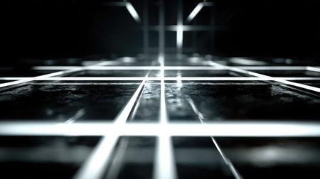 This artwork showcases a minimalist style with sharp lighting, creating a structured and modern aesthetic. It is perfect for use in architectural visualizations, design portfolios, and as a backdrop for tech-related marketing materials. The clean lines and vibrant colors appeal to professionals in the design and architecture industries. AI-generated digital illustration. AI-generated illustration.