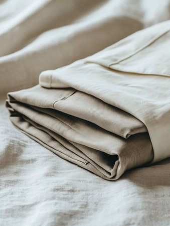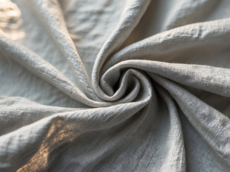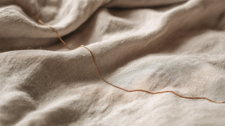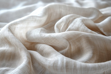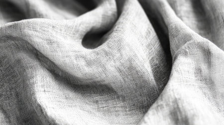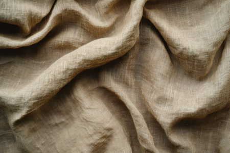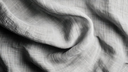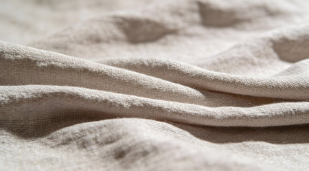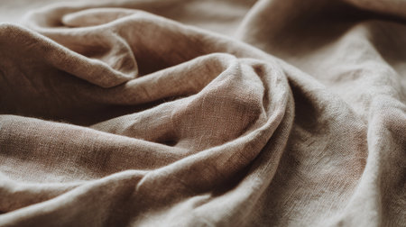 A detailed close-up of soft linen fabric showcasing gentle creases and textures. Ideal for textile showcases, decor inspiration, or fashion projects focusing on natural materials.