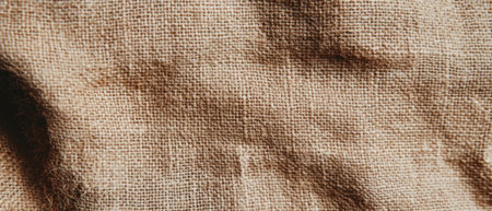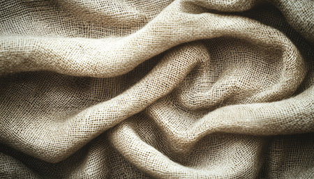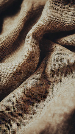 Macro shot revealing details of burlap fabric. The image shows the texture, folds, and shadows of the material in a close-up, creating a sense of depth.