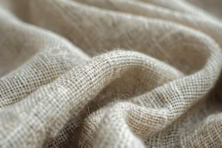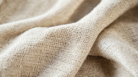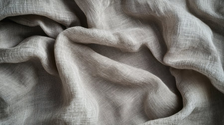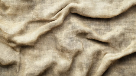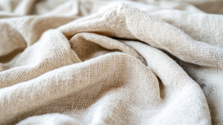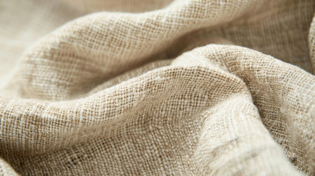 This close-up image highlights the intricate texture of natural fabric, showcasing soft twists and wrinkles. Ideal for textile projects, interior design inspiration, or showcasing organic materials.