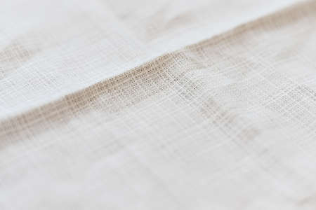 Close up of white fabric cloth texture background. Selective focus.