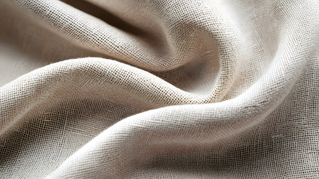 A close-up view of soft, natural fabric showcasing gentle drapes and a light neutral color, ideal for home d