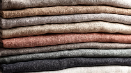A collection of soft, textured fabrics in various shades arranged in neat piles. This setting is ideal for textile shoppers seeking quality materials for their projects.