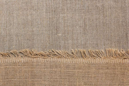 Сoarse burlap on linen cloth bag halved background