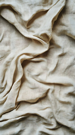 Elegant gentle beige linen textile folds create soft waves in a refined organic style backdrop.