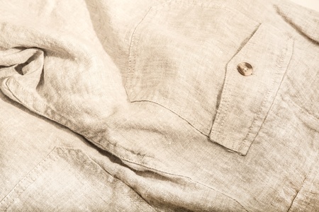 Close up of men's linen shirt. Soft focus.