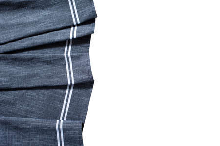 Blue napkin, tablecloth, fabric texture with creased folds isolated on white.