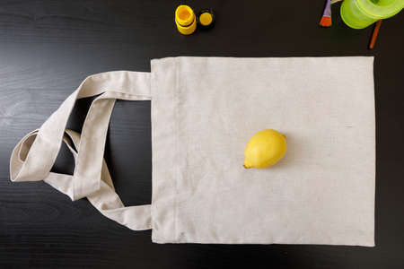 Blank Eco shopping bag made of fabric or tote bag fabric cloth shopping sack. Concept of ecology or environment protection