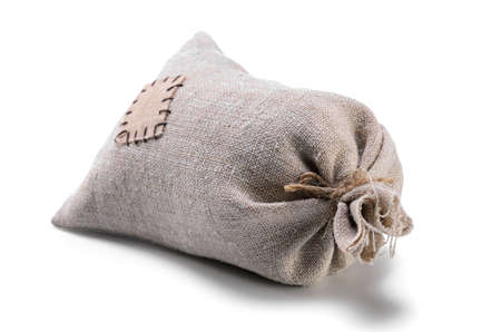 bag coarse fabric with botch on white background with soft shadow