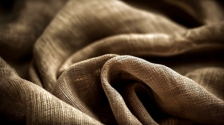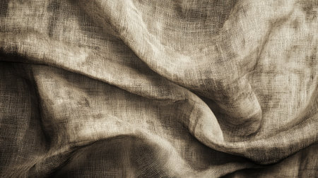 A captivating close-up image of textured fabric showcasing gentle drapes in natural earth tones, ideal for backgrounds, fashion design, and artistic projects.