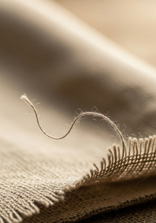 Fragment of rough linen tissue. Side view, natural textile background and texture.