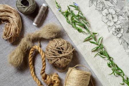 Linen textile products, fabric, threads, yarn, rope and blooming flax