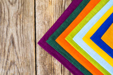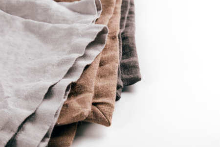 Different Color Natural Textile Napkin Close Up. Food Prop Fabric. Linen Cotton Table Cloth.