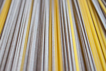 Italian pasta noodles. Flat and thin pasta. Yellow linguini pasta
