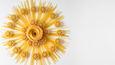 Delightful arrangement of various pasta shapes radiates warmth and creativity.