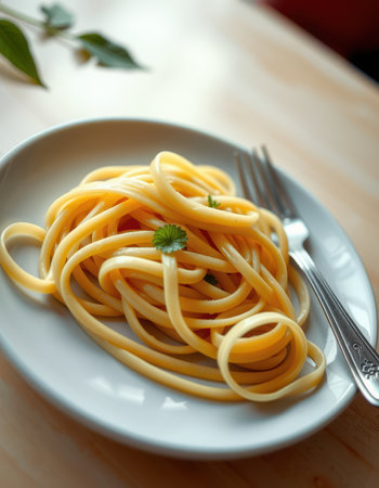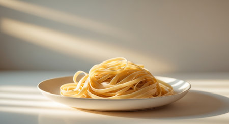 AI Generated. Radiant Plate of Fettuccine - Shadows and Flavors Unite