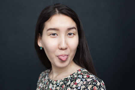 To tease someone. Asian pretty girl funny tongue shows.