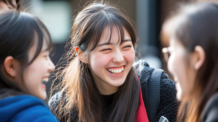 A group of friends laughing together outdoors, sharing joyful moments and vibrant energy in a candid and natural setting.