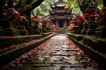 Beautiful buddhist jungle old temple scenery pictures AI Generated Image