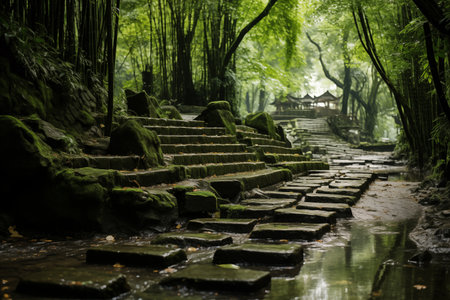 stone steps in a bamboo grove, japanese style garden