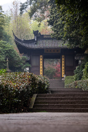 Hangzhou, China - 14 May 2019: Entrance sign to the Xiling Seal Art Society in Zhongshan Park near West Lake