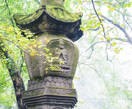 Small stone lamps in ancient Chinese temple