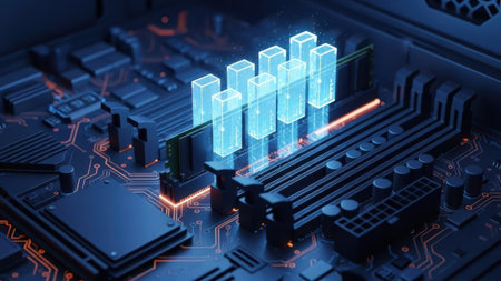 Global ram memory shortage crisis depicted with futuristic circuit board and glowing memory modules.