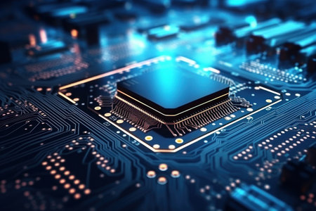 microchip close up electronic background, realistic illustration