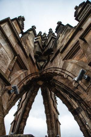 Gray old stone buildings in the historic center of the capital of Scotland - Edinburgh