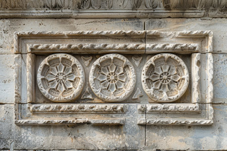 Explore the intricate details of a classic stone relief showcasing ornate floral patterns and craftsmanship, perfect for architecture enthusiasts and designers.