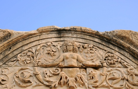 Detail of the Temple of Hadrian in ancient Ephesus in Turkey