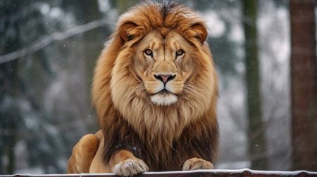 An AI generated illustration of A stunning image of a large male lion with a thick, majestic mane surrounding its face