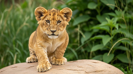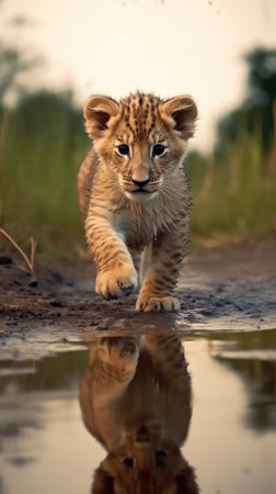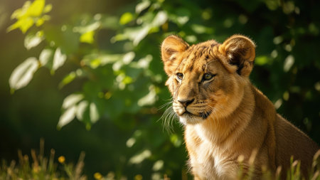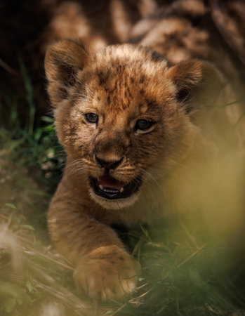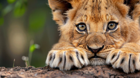 Captivating Close Up Portrait of a Cute and Curious Young Lion Cub Exploring its Natural Habitat in the Wilderness The Majestic Feline Displays a Blend of Innocence and Power