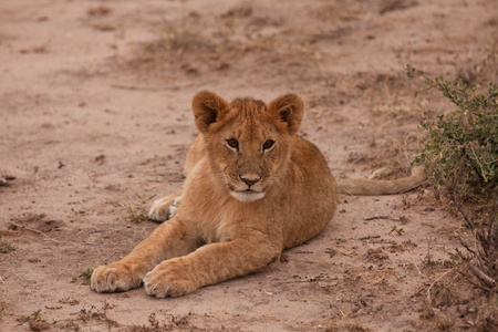 Lion cub looking at camera in Serengeti National Park, Tanzania