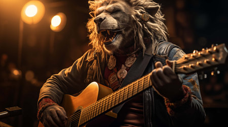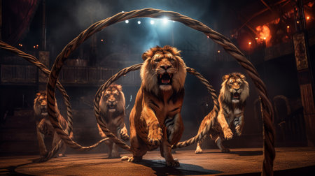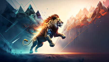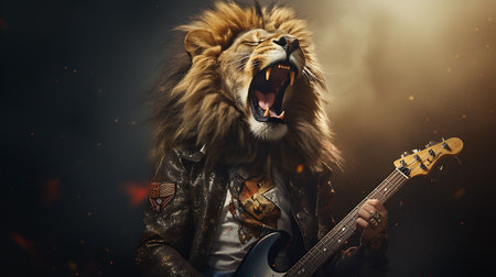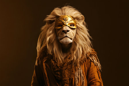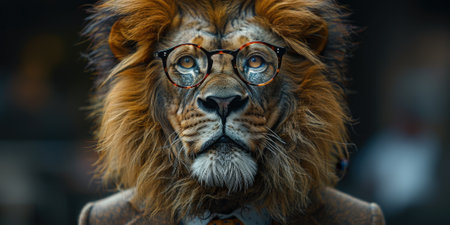 Majestic lion portrait against a dark background visual presentation