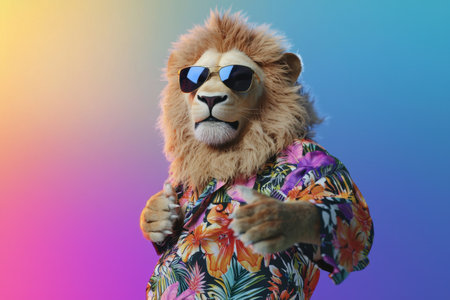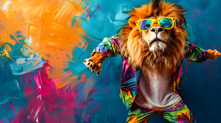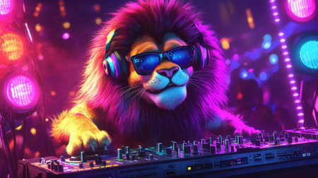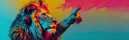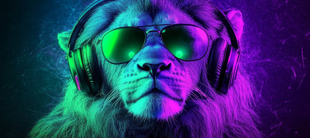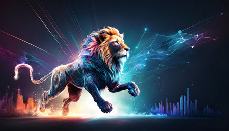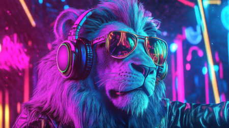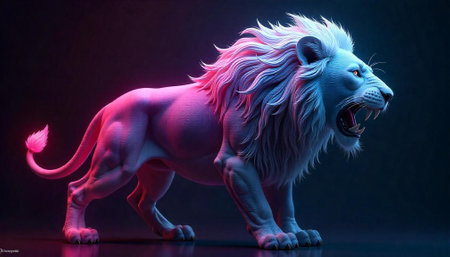 Neon Lion: Glowing beast with vibrant colors roaring pose