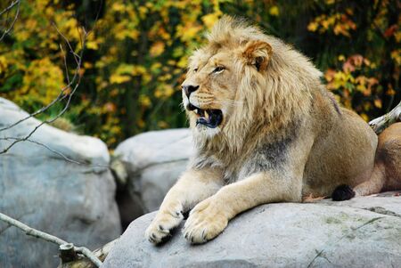 Beautiful mature lion lying down during the day