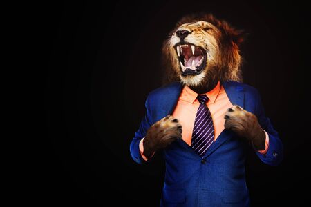 Furious angry businessman with face of lion roar