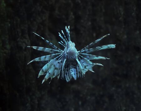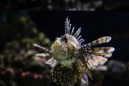 Pterois volitans or the Lionfish, a venomous fish, inside an aquarium