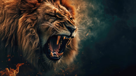 Close up shot of roaring lion