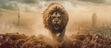 Monstrous sandstorm in the shape of a giant angry lion Generative AI