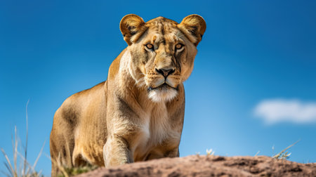 Majestic lioness staring at camera, alertness in her eyes generated by artificial intelligence