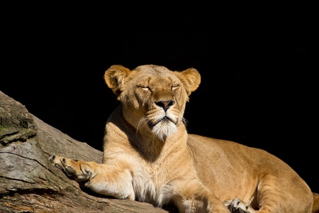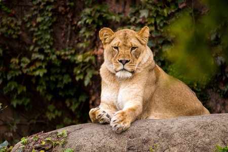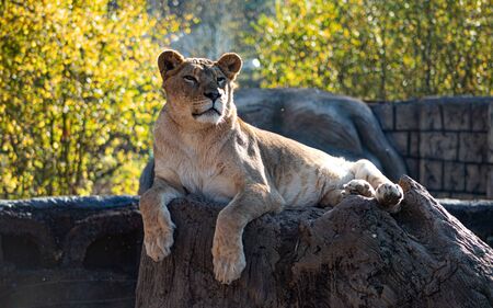 500px Photo ID: 278884949 - Female Lion Sunning on Rock in the Lincoln Park Zoo in Chicago, IL. Posing and staring at camera with shallow focus