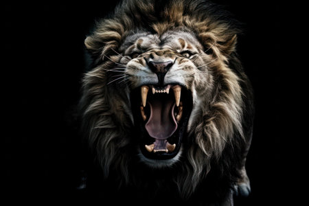 Roaring lion on black background.
