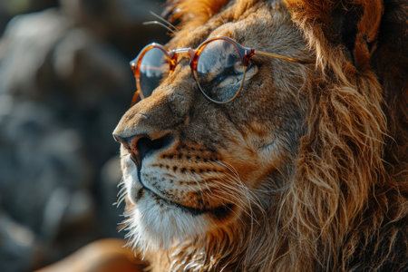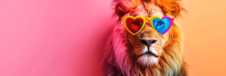 glamorous lion wears colored heart glasses