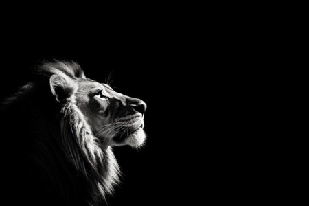 lion animal black and white isolated minimalistic wallpaper background blank design cover copy space design, mockup, close