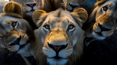 Lion and lioness, an animal family, captured in a dark portrait, showing the regal beauty of these untamed creatures in the wild