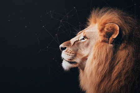Majestic lion portrait with a flowing mane against a dark background, showcasing power, grace, and beauty in wildlife photography